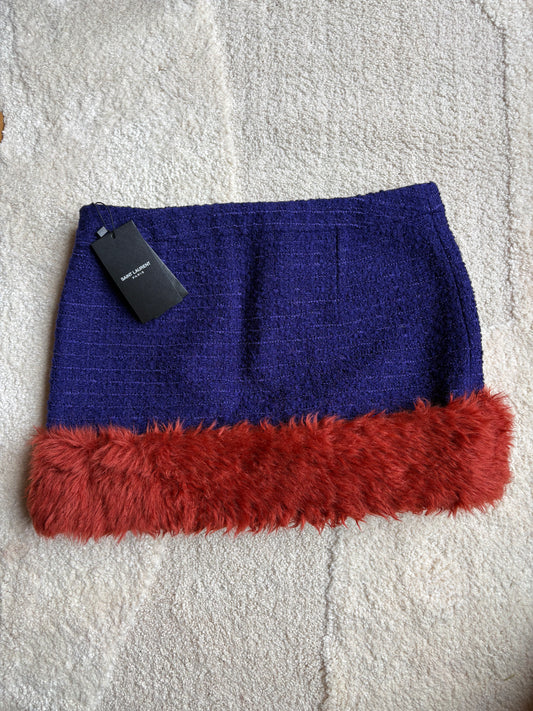 Jupe Saint Laurent laine & fausse fourrure