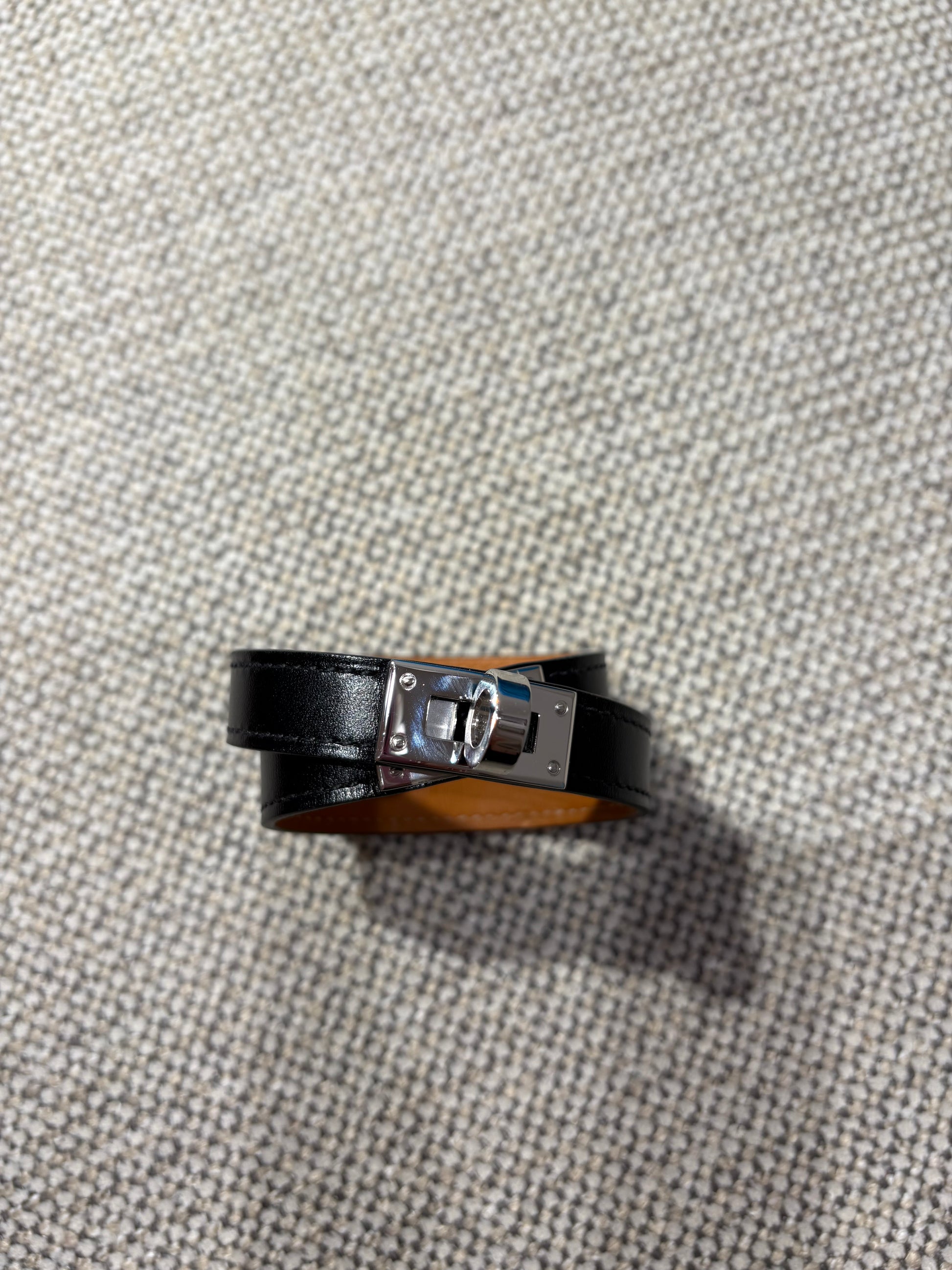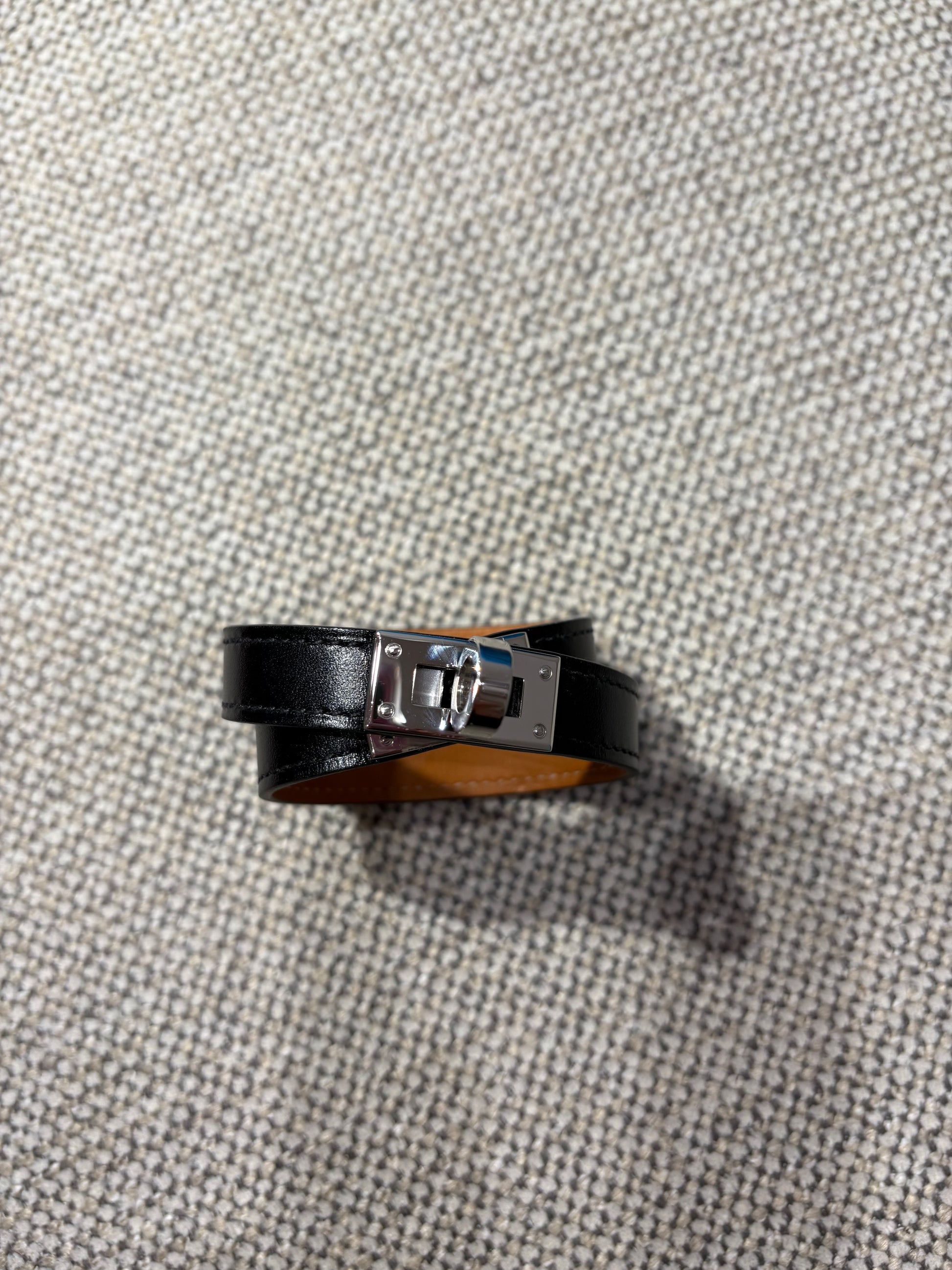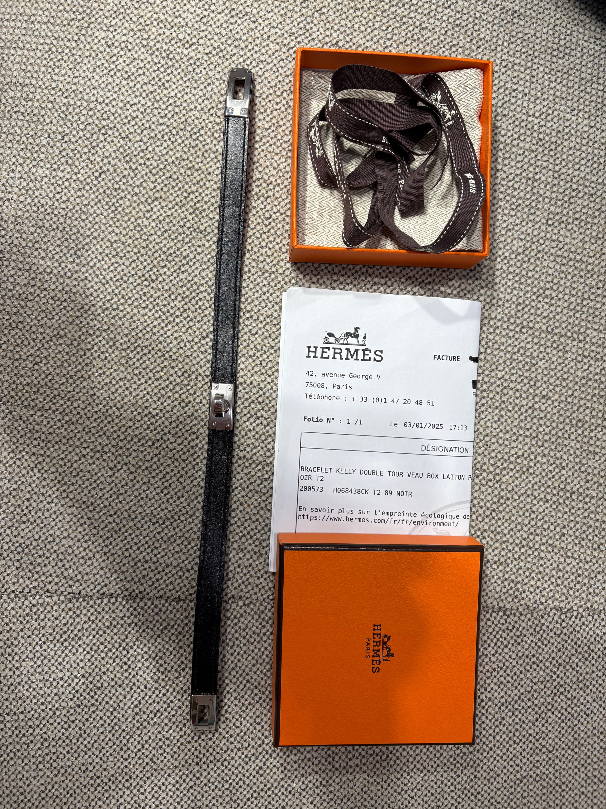 Bracelet Hermès double tour veau box laiton palladie noir T2 89 de 2025.