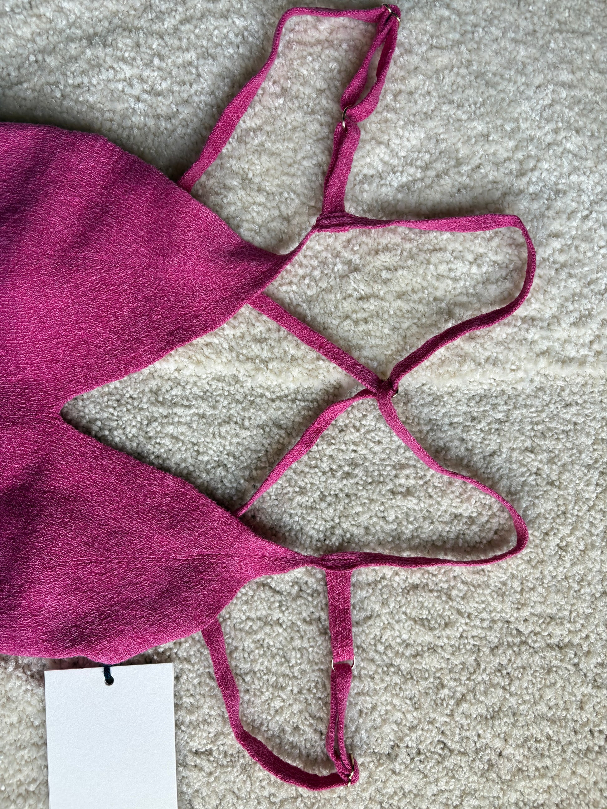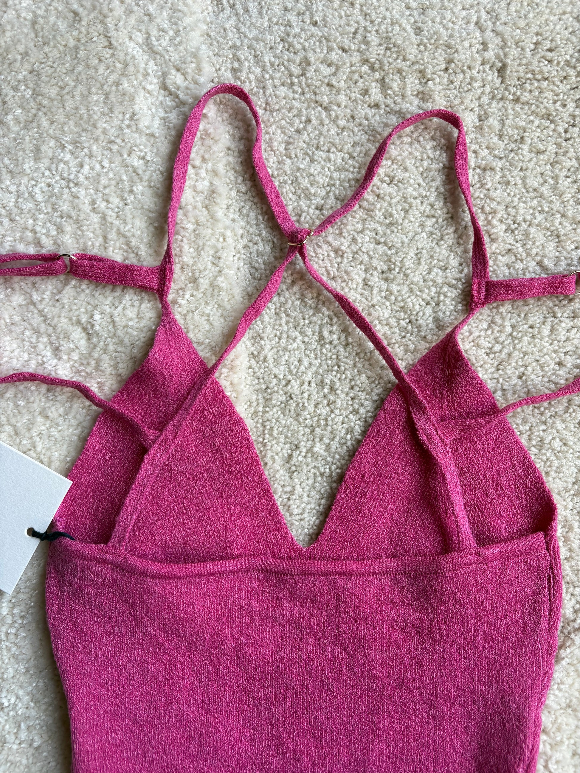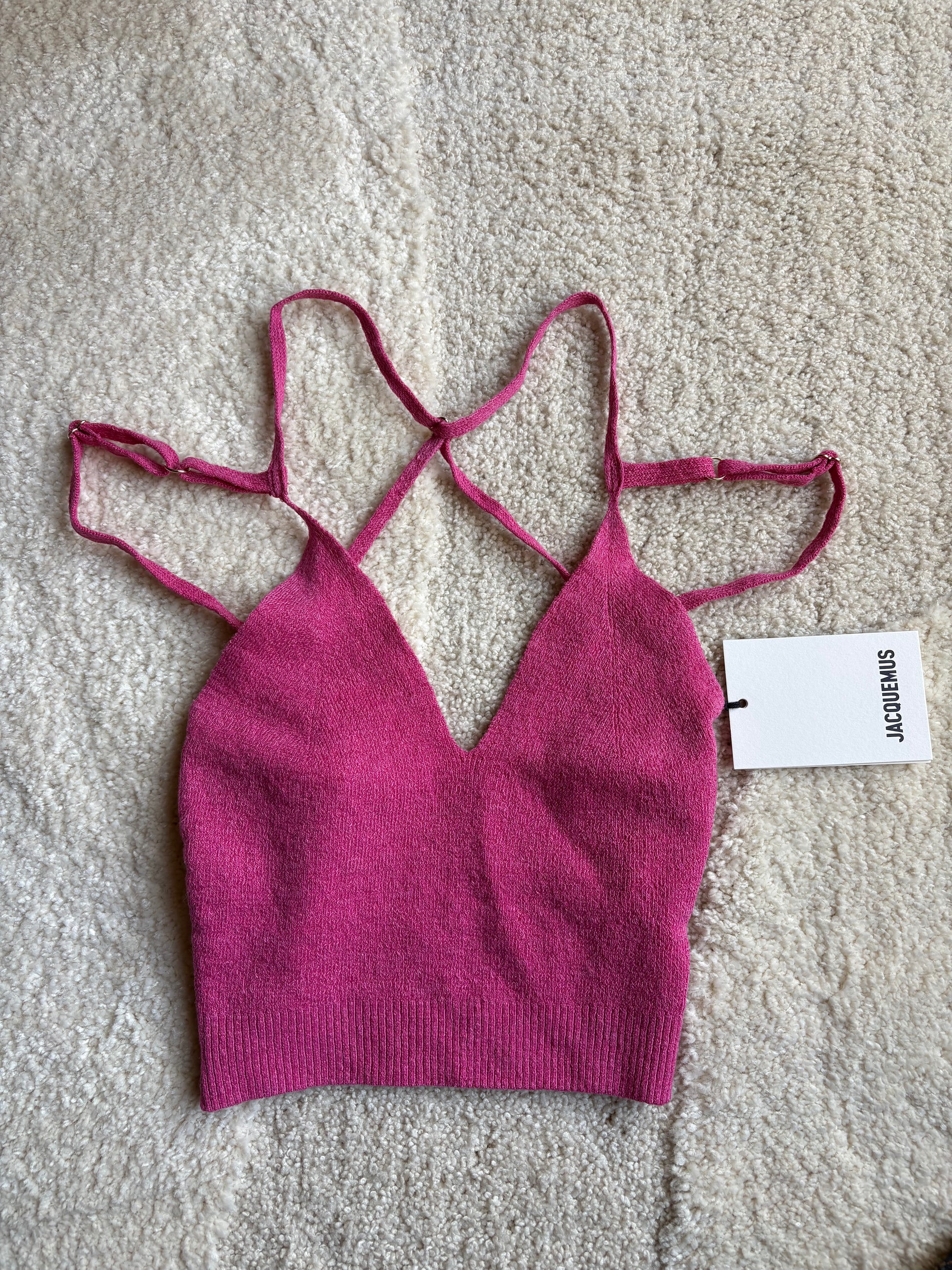 Top iconique de la maison Jacquemus, modèle La Maille Aneto, dans un sublime rose vibrant.